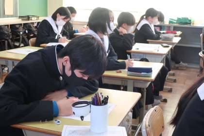 2/18 3-5 入試対策と… 2 公開日 2025/02/18 更新日 2025/02/18 各学年から 3年5組の社会の授業の様子です。 返却された確認テストを使って、入試に必要な考え方と卒業後の社会の学習について解説がされていました。