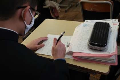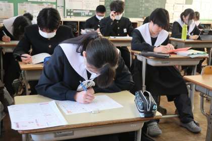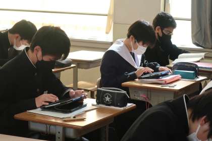 授業で学習した単元のまとめのプリントに取り組んでいました。