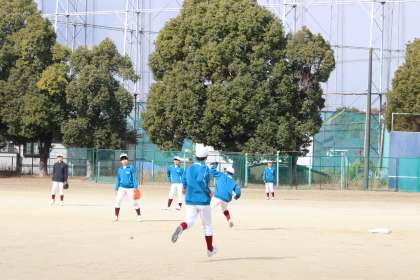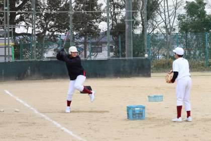 バッティング練習で、フォームを確認しながらしっかり練習に取り組んでいました。