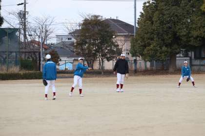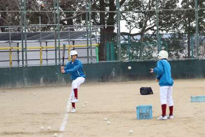 バッティング練習で、フォームを確認しながらしっかり練習に取り組んでいました。