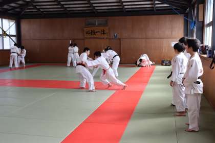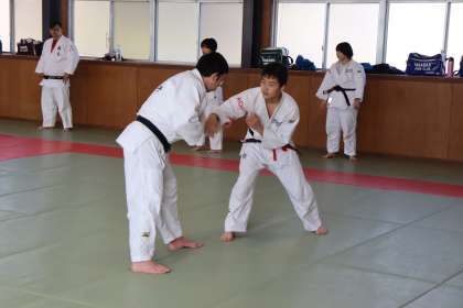 地稽古では、積極的に顧問やコーチと組んでいました。また、練習に参加していた3年生が丁寧にアドバイスを与えている姿が印象的でした。