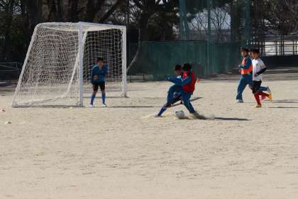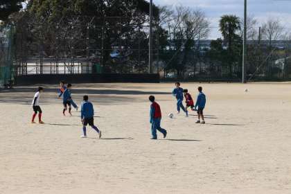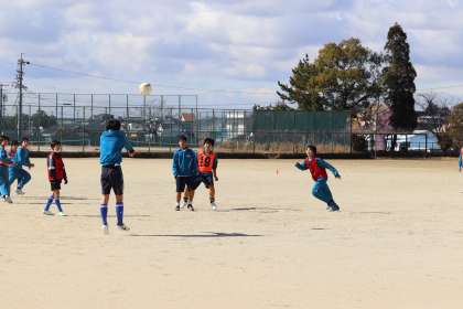 これまで休日は校外でのゲームが多かったのですが、久しぶりに校内での練習でした。寒さに負けず、元気いっぱいコートを走り回っていました。