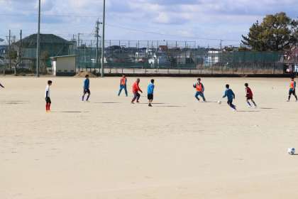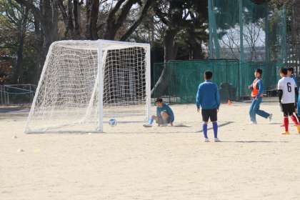 これまで休日は校外でのゲームが多かったのですが、久しぶりに校内での練習でした。寒さに負けず、元気いっぱいコートを走り回っていました。