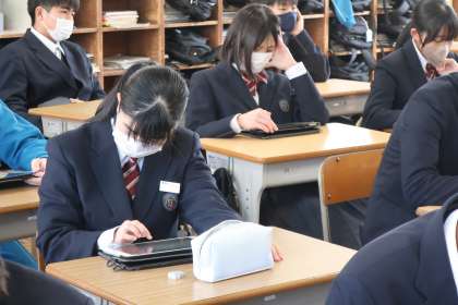 今回は、これまでの振り返りを行いました。この活動を通して成長したと思うことや仲間の良さなどを思い出し、学習用タブレットに入力していました。