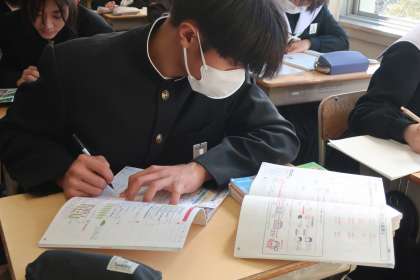 2/25 3-3 直前の追い込み 3 公開日 2025/02/25 更新日 2025/02/25 各学年から 3年3組の社会の授業の様子です。 明日の公立高校一般入試に備え、最後の追い込みと確認です。すでに進学先が決まってる生徒も、仲間のために一緒に学習に取り組んでいます。 不安を取り除き、明日は全力で頑張ってほしいと思います。