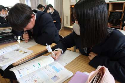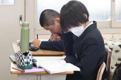 「地震の伝わり方」の単元で、初期微動と主要動、P波とS波のちがい、初期微動継続時間など、重要語句の理解や計算問題に取り組んでいました。