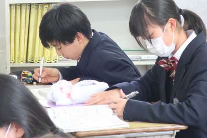 2/25 1-2 地震を学ぶ 3 公開日 2025/02/25 更新日 2025/02/25 各学年から 1年2組の理科の授業の様子です。 「地震の伝わり方」の単元で、初期微動と主要動、P波とS波のちがい、初期微動継続時間など、重要語句の理解や計算問題に取り組んでいました。