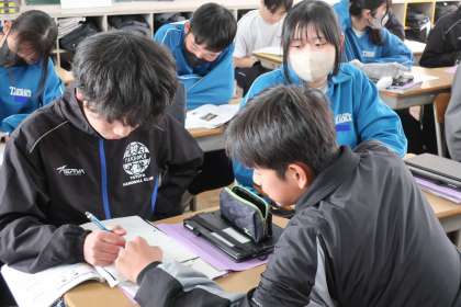 「地震の伝わり方」の単元で、初期微動と主要動、P波とS波のちがい、初期微動継続時間など、重要語句の理解や計算問題に取り組んでいました。