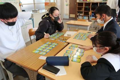これまでに学習してきた防災関連の内容も発表会を終え、その知識をさらに高めていこうと、すごろくやカードゲームに取り組んでいました。