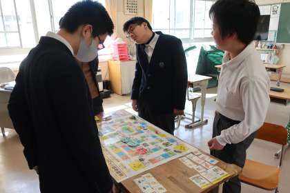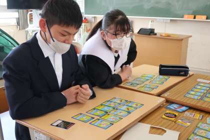 2/25 1,2学級 防災意識をさらに… 3 公開日 2025/02/25 更新日 2025/02/25 各学年から 1,2学級の社会の授業の様子です。 これまでに学習してきた防災関連の内容も発表会を終え、その知識をさらに高めていこうと、すごろくやカードゲームに取り組んでいました。