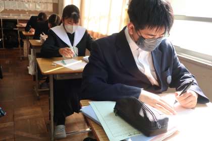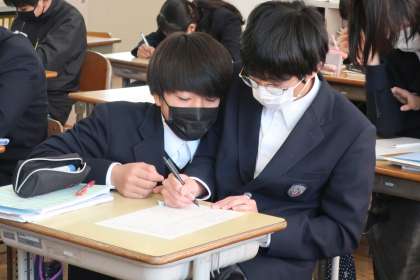 2/25 2-3 パターンが複雑に 3 公開日 2025/02/25 更新日 2025/02/25 各学年から 2年3組の数学の授業の様子です。 確率の学習で、次第に考えられるパターンが複雑になっていきますが、仲間と意見を交わしながら、根気よく取り組んでいました。