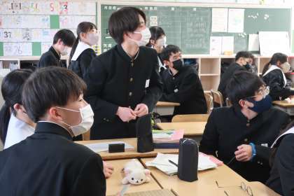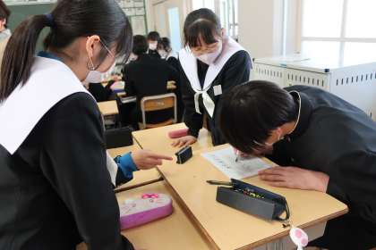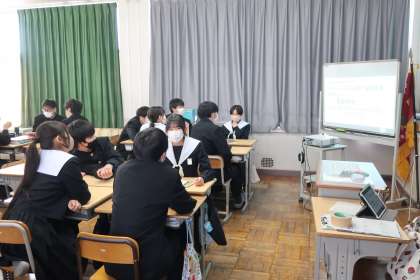 義務教育最後の授業です。グループ対抗で入試にも役立つ国語クイズにチャレンジしていました。明日の入試本番でも、このリラックスした雰囲気で最高の力を発揮してほしいと思います。