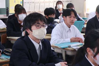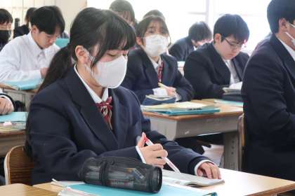 1年3組の英語の授業の様子です。 長文の読解で、一文ずつ丁寧に和訳の解説を聞いていました。