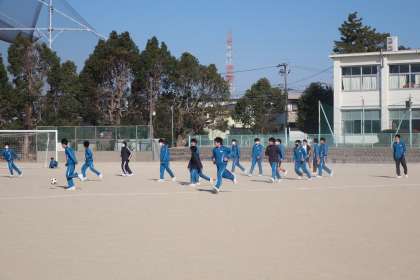 サッカーのゲームに取り組んでいました。風は若干冷たいものの、ボールを追うこと一生懸命になって走り回っていると、あっという間に汗ばむほどの陽気でした。