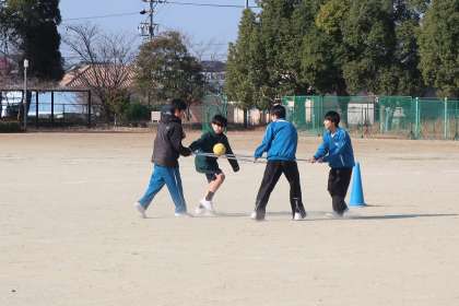 学年レクで取り組む種目の練習・動きの確認を行っていました。