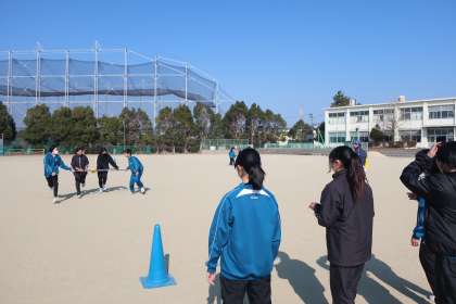 学年レクで取り組む種目の練習・動きの確認を行っていました。