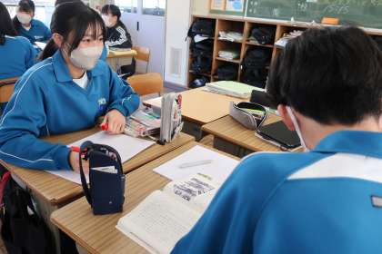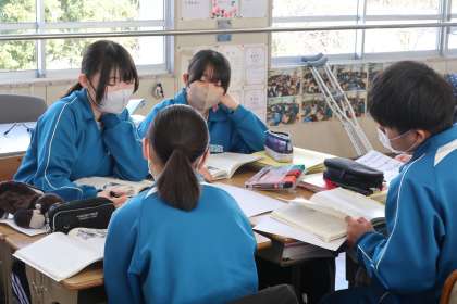 「走れメロス」の登場人物の人物像について、これまで学習してきたことや教科書から読み取れることを、仲間と意見を交換しながらまとめていました。