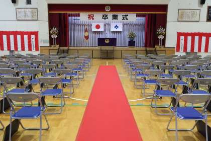 式場となる体育館、仲間と最後に過ごす教室の準備は万端です。