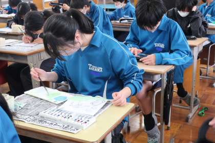 昨日の1年1組の美術の授業の様子です。