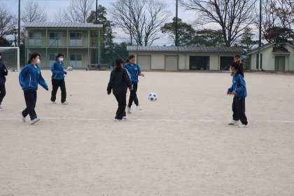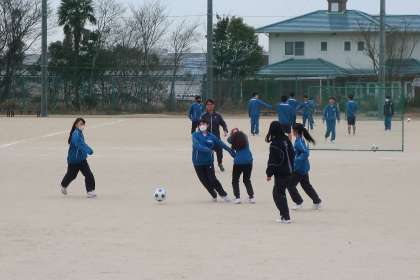 サッカーのゲームに取り組んでいました。ボールを追うことに一生懸命になって走り回っています。