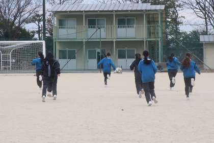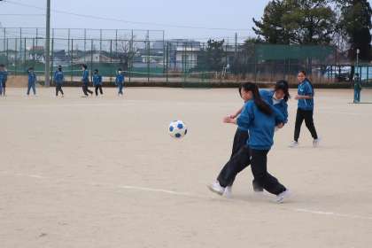 サッカーのゲームに取り組んでいました。ボールを追うことに一生懸命になって走り回っています。