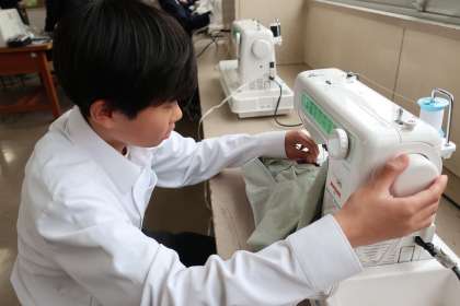 トートバッグづくりです。ミシンの操作は真剣そのもの、下準備は仲間と声をかけ合ってと、全員が作業に意欲的に取り組んでいる様子が印象的でした。