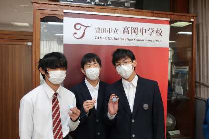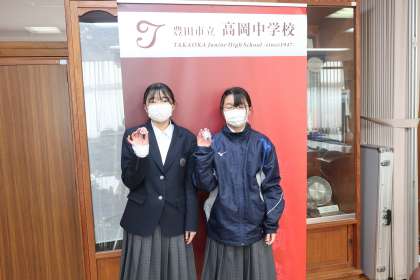 先週金曜日(2/28)、1月19日にジュニアクラブ主催で行われた「学校周辺清掃活動」で活動してくれた生徒たちに、学校オリジナル缶バッジが配付されました。
