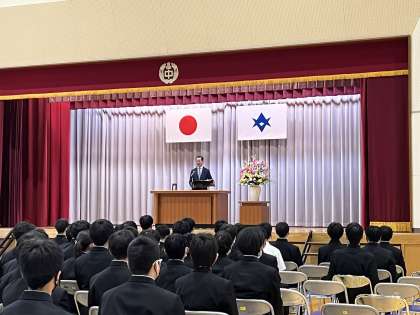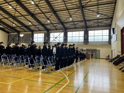 会長様を含め3名の役員の皆様にお越しいただき、入会式と総会が行われました。3年生151名の加入で、高岡中学校の同窓会員数は20,271人となりました。