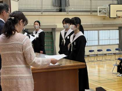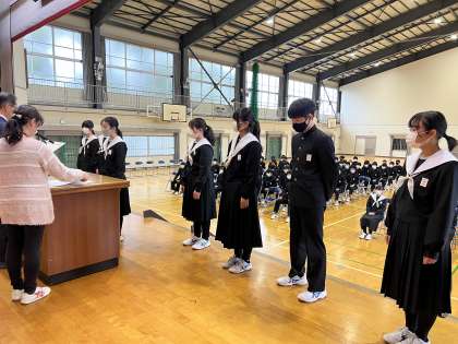 3年生のみの卒業式練習の前に行われた各種表彰式(第1弾)の様子です。