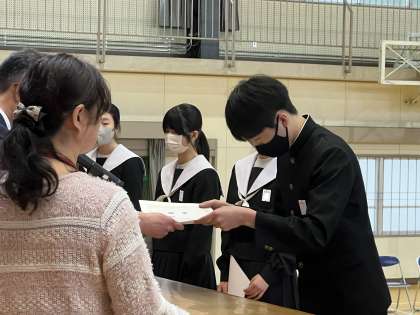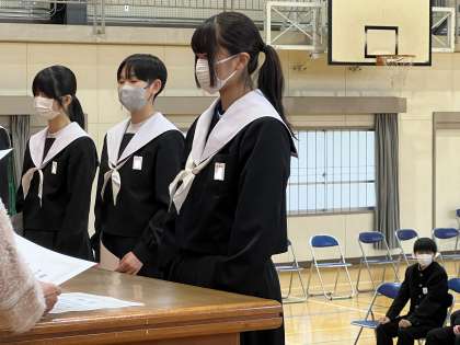 3年生のみの卒業式練習の前に行われた各種表彰式(第1弾)の様子です。