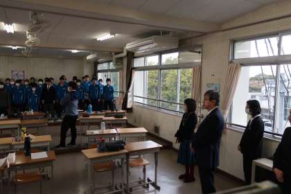 『3年生を送る会』の前日ということもあり、準備や練習の様子を見ていただきました。教科の授業や行事で見る様子と違った生徒たちの様子に、「本当によく活動していますね」「中学生の頃、合唱をあんなにがんばった記憶がない」などの言葉をいただきました。