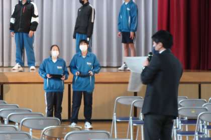 『3年生を送る会』の前日ということもあり、準備や練習の様子を見ていただきました。教科の授業や行事で見る様子と違った生徒たちの様子に、「本当によく活動していますね」「中学生の頃、合唱をあんなにがんばった記憶がない」などの言葉をいただきました。
