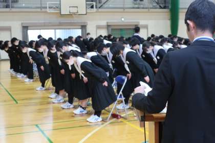 全校生徒が揃っての卒業式練習の様子です。
