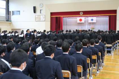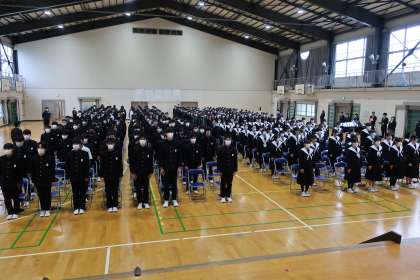 全校生徒が揃っての卒業式練習の様子です。