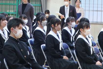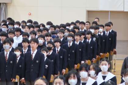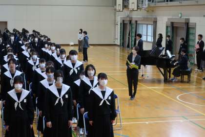 全校生徒が揃っての卒業式練習の様子です。