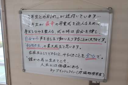 2年生の今週のホワイトボードメッセージです。