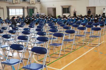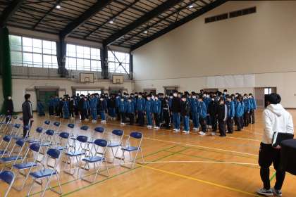 3年生の下校後、1,2年生が明日の卒業式に向けての準備を始めました。
