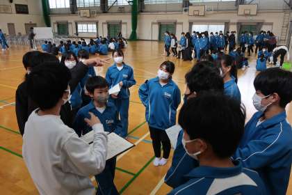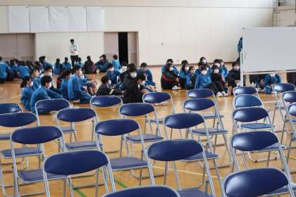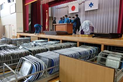 3年生の下校後、1,2年生が明日の卒業式に向けての準備を始めました。
