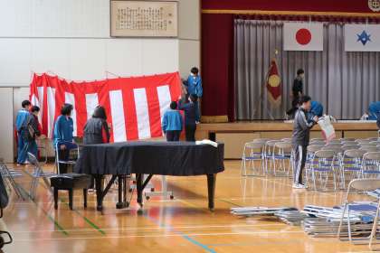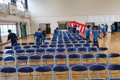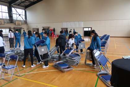 3年生の下校後、1,2年生が明日の卒業式に向けての準備を始めました。