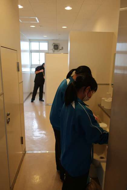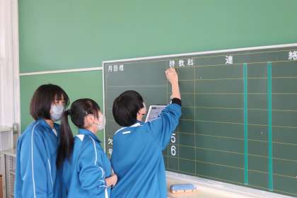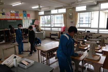 3年生の下校後、1,2年生が明日の卒業式に向けての準備を始めました。