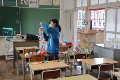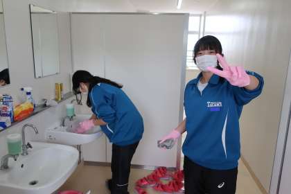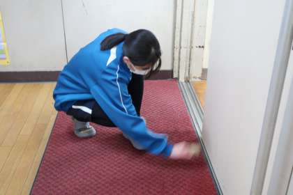 3年生の下校後、1,2年生が明日の卒業式に向けての準備を始めました。
