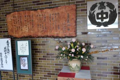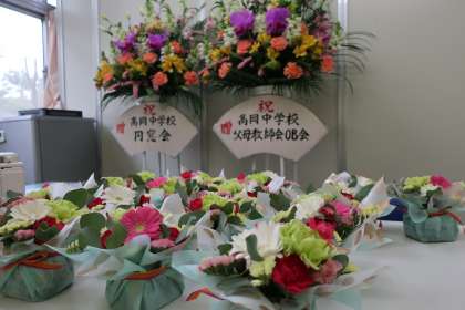 会場を彩った花たちが、校内のいろいろな場所に置かれ、感動の余韻を醸し出してくれています。まさに、感動のおすそ分けといったところです。月曜日からの学校生活で卒業式のことを思い出しつつ、新たな気持ちでスタートを切ってほしいと思います。