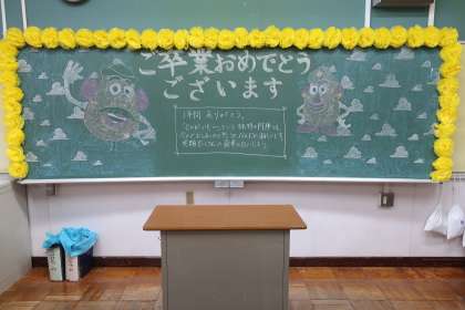 3年3組教室の黒板メッセージです。
