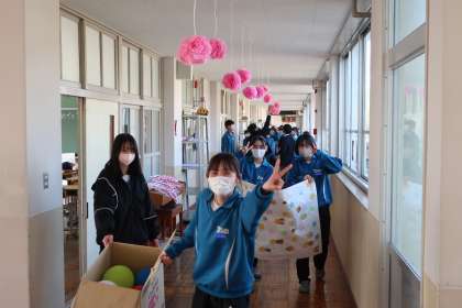 3年生を送る会から卒業式まで飾られていた装飾品の数々。