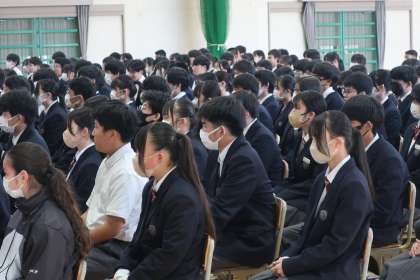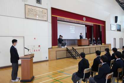1,2年生全員が体育館に集まり、立候補者の生の演説を聞きながらの選挙となりました。今回も定員を上回る立候補者があり、高岡中学校をよりよい学校にしていこうとしている気持ちが伝わってくるものでした。