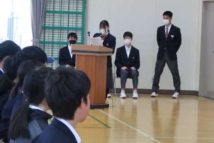 1,2年生全員が体育館に集まり、立候補者の生の演説を聞きながらの選挙となりました。今回も定員を上回る立候補者があり、高岡中学校をよりよい学校にしていこうとしている気持ちが伝わってくるものでした。
