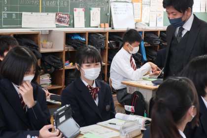 1年1組の社会・地理分野の授業の様子です。