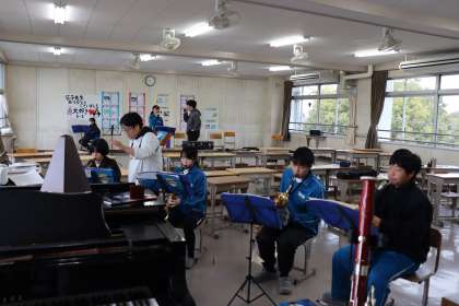 今月末に開催される演奏会に向け、一生懸命練習に取り組んでいます。新たに2名の地域指導者も加わり、早くも打ち解け、とても雰囲気よく練習が行われていました。
