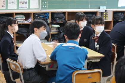 グループ対抗で英語のクイズに挑戦していました。