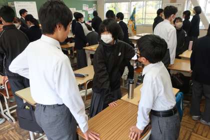 朝の活動時に行われた「たかまるタイム(第38回)」・1年生の様子です。